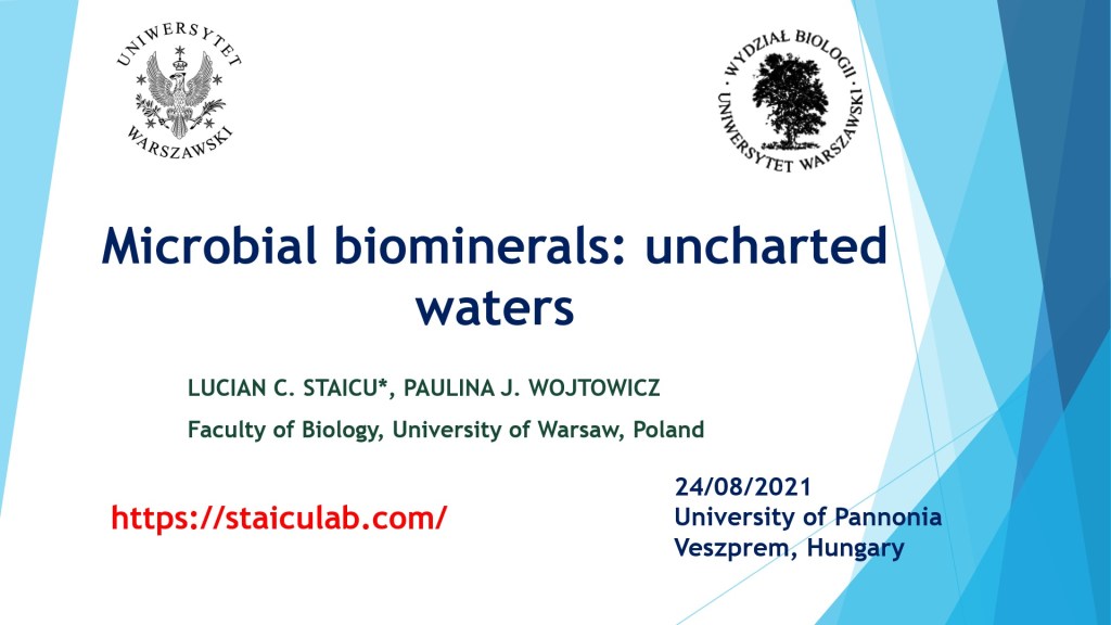 Dr Lucian Staicu will deliver a talk on microbial biominerals on August 22 at University of Pannonia, Veszprem, Hungary at the invitation of Prof. Mihaly Posfai.