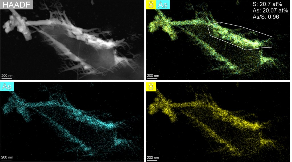 - AsS (realgar) and As2S3 (orpiment) were formed using cysteine as a source of H2S.